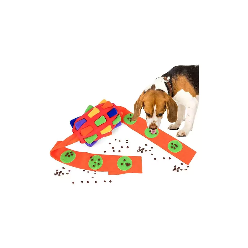 • Easy to Use & Durable: This dog games is easy to use just simply loosen the cloth strip, place snacks inside, and roll it up to hide them instead of hand-delivering a tasty meal in a dog bowl or a mat. Made of high-quality and durable safe materials that can withstand rough play.